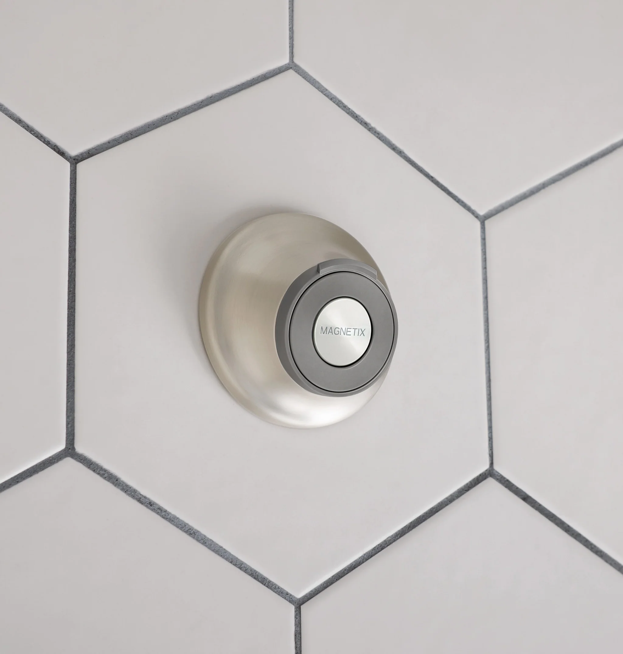 Magnetix handheld showers are the first Moen products to include magnetic docking, which allows for easy release and securely snaps back into place -- even when your eyes are closed.