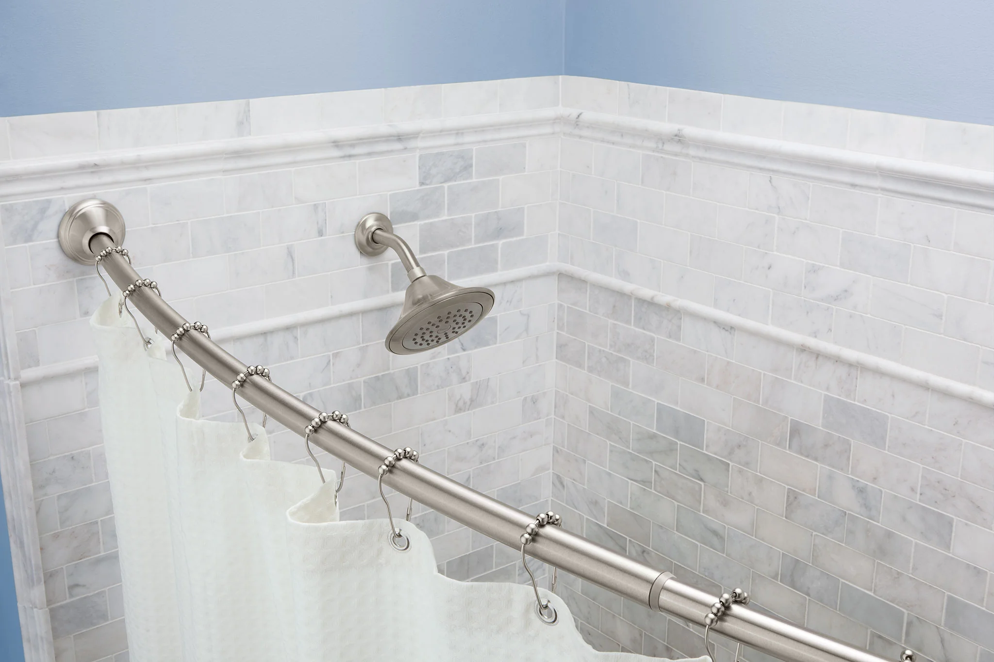 Add an elegant and luxurious look while also creating a more comfortable experience in the bath with Curved Shower Rods. Gracious and uncomplicated style features give Moen Curved Shower Rods an ageless yet fashion-forward presence. Tailored yet relaxed, Moen Curved Shower Rods are an exercise in design balance. This lustrous collection works seamlessly with today's lifestyles.